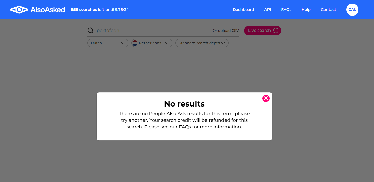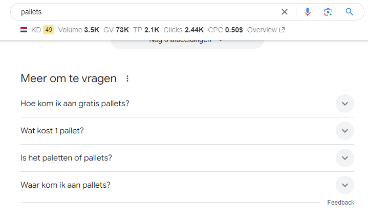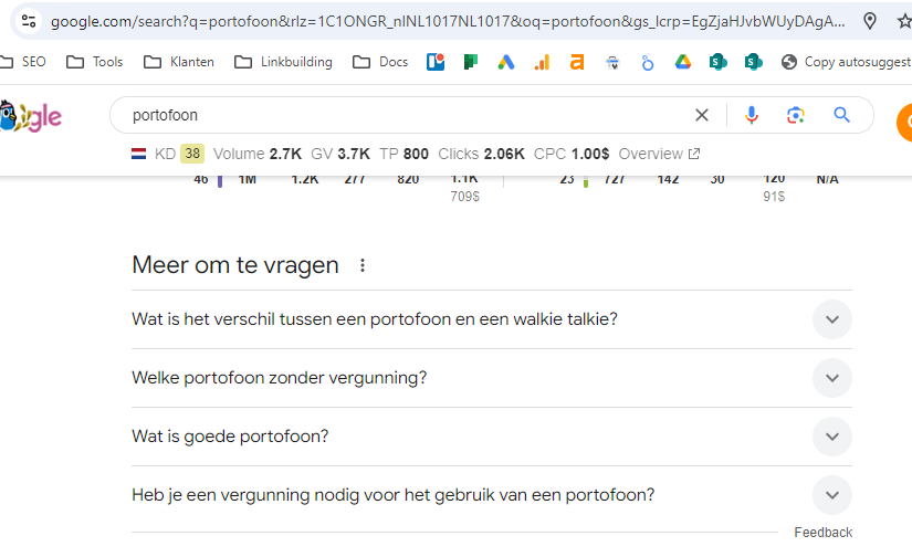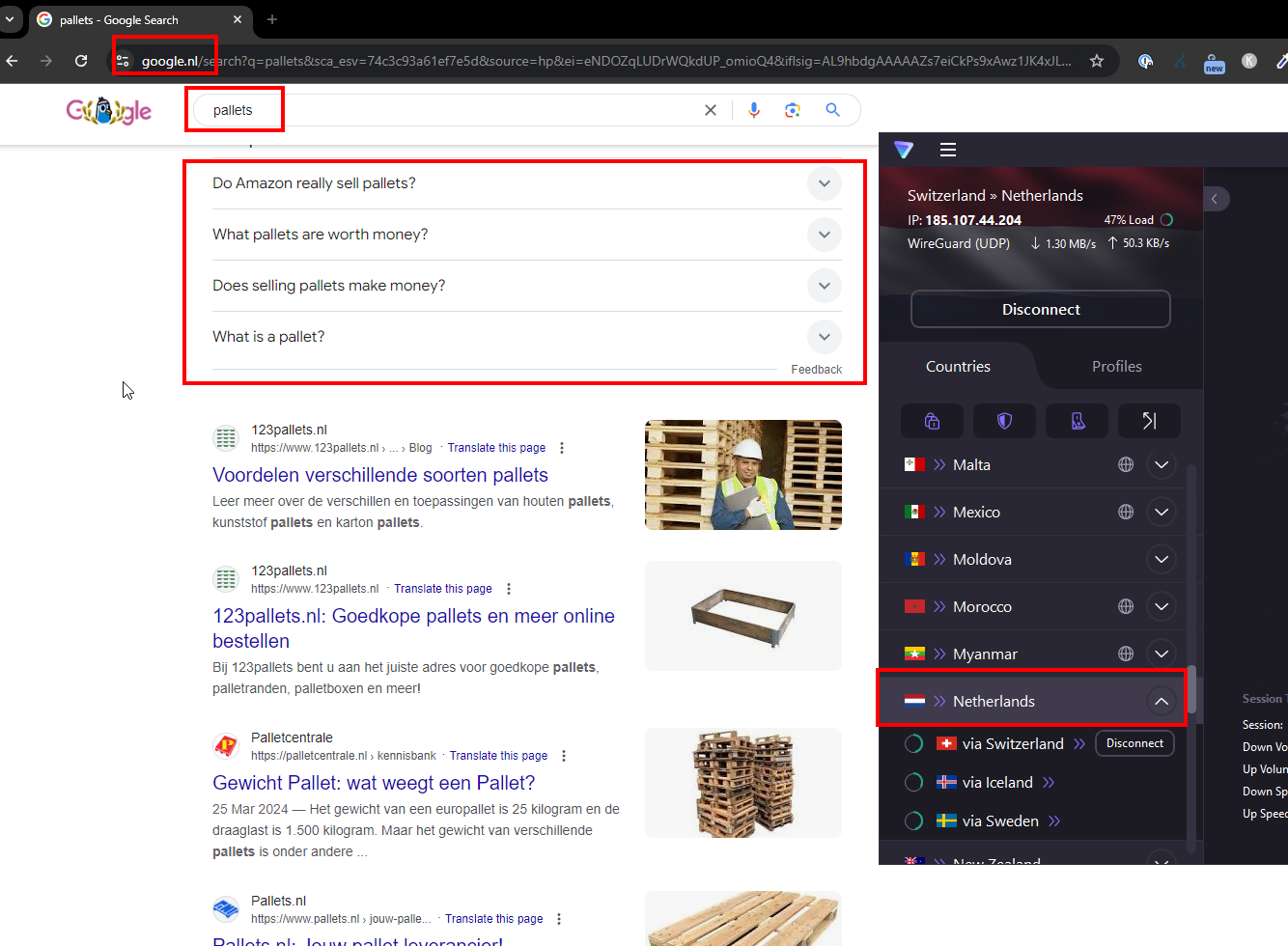 2) Using Netherlands VPN on Google.nl on my machine does return results in English for some queries (“pallets”) and “No Results” for terms such as “portofoon”